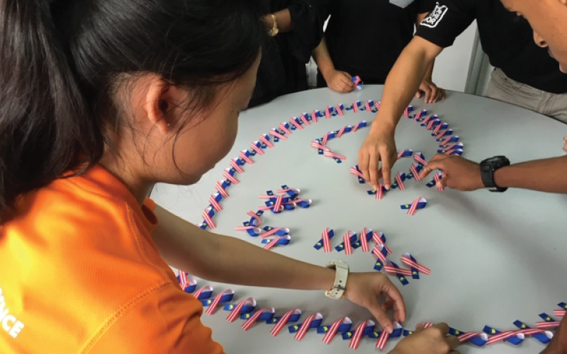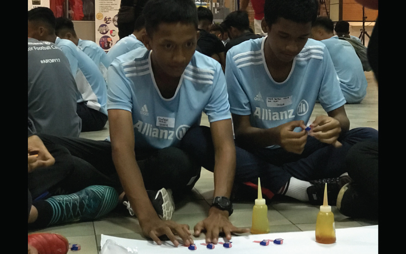 Unity Ribbon Workshop at the annual Allianz Junior Football Competition with young footballers representing every state in Malaysia from KL to Kelantan to Sabah and Sarawak.
