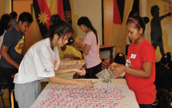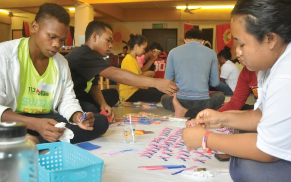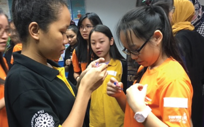 Unity Ribbon making session with Orang Asli students from SOLS 24/7, refugee students from Fugee School and students from Sunway University getting to know each other better.