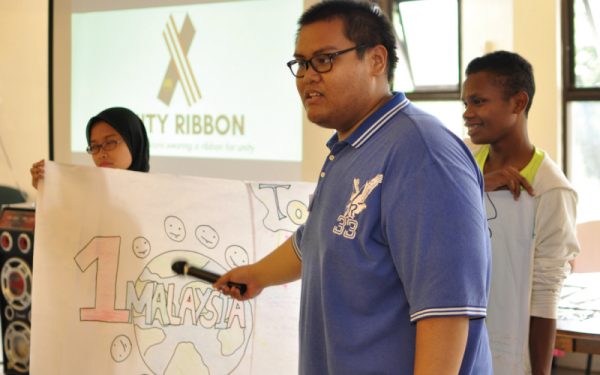 Unity Ribbon workshop at SOLS 24/7 together with the Orang Asli youths and university students where participants from different backgrounds shared what Unity means whilst making the Unity Ribbons.